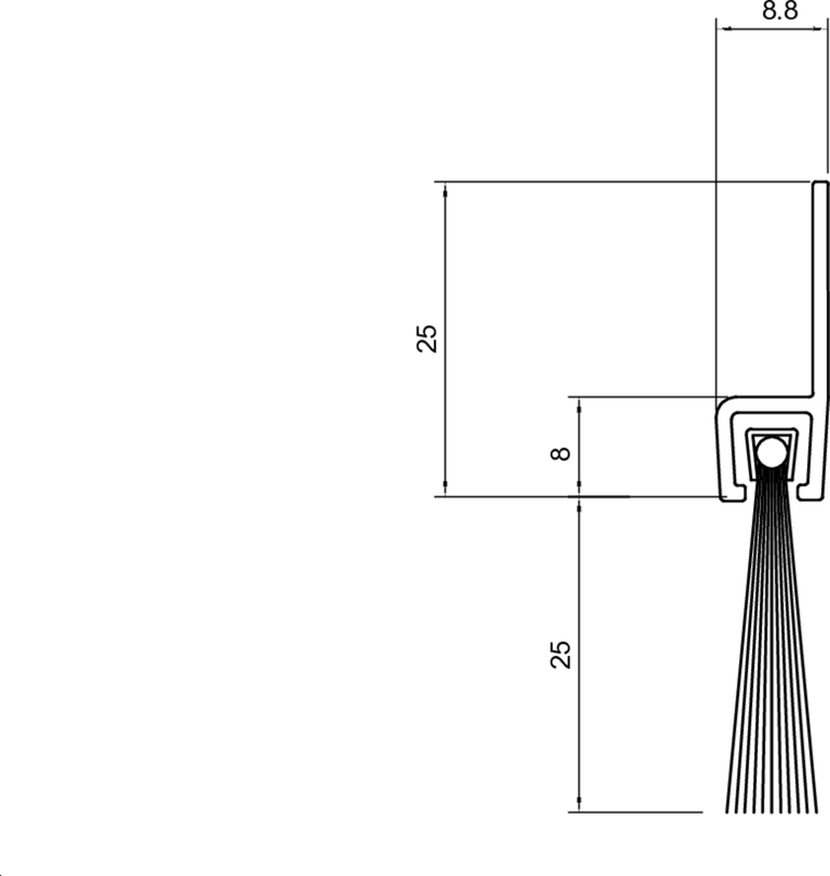 Athmer Bürstendichtung AA 25-8 m. Rossh. mixed l=1000 mm, Besatzhöhe 20mm, silber