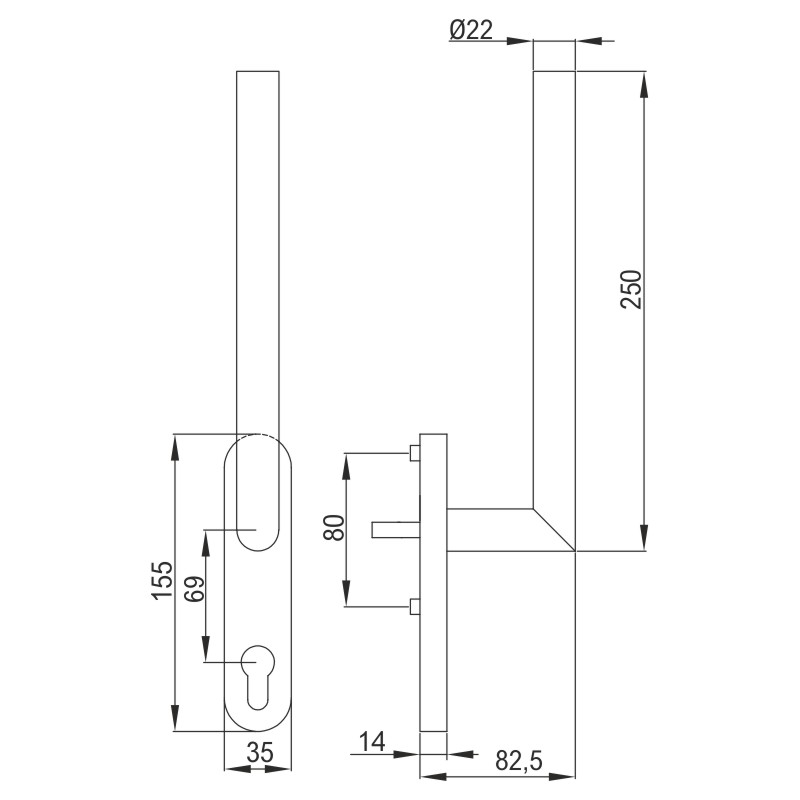 greenteQ Hebe-/Schiebetürgriff HSTG61.PZ.ER - inkl. Schrauben