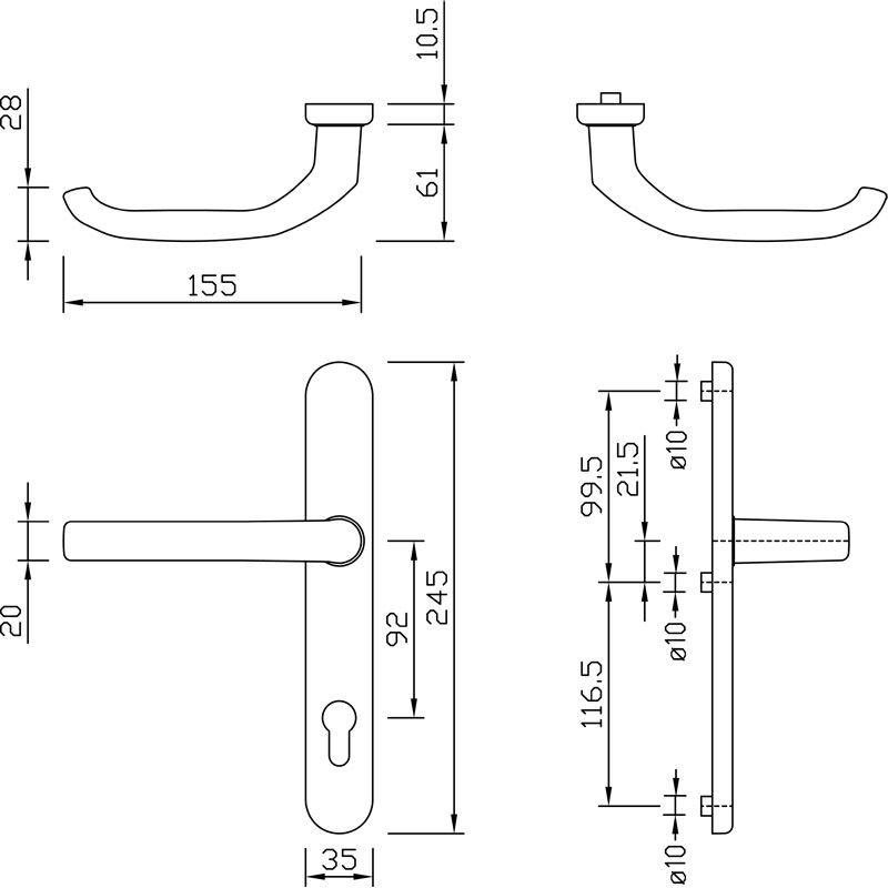 Die greenteQ Schmalrahmengarnitur DG 58.S216.AL.SS PZ 92 ist aus Aluminium und hat eine Schildbreite von 35 mm. Die Garnitur ist PZ-gelocht, mit einer Entfernung von 92 mm. Die Drücker sind fest/drehbar gelagert und haben eine Hochhaltefeder.