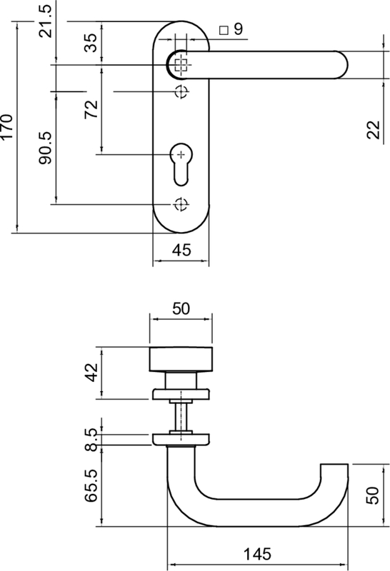 für FH-Türen, mit Kurzschild rund, mit Befestigungsmaterial