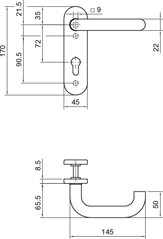- ECO Kurzschild mit Türdrückerlochteil D-110 ohne PZ-Lochung