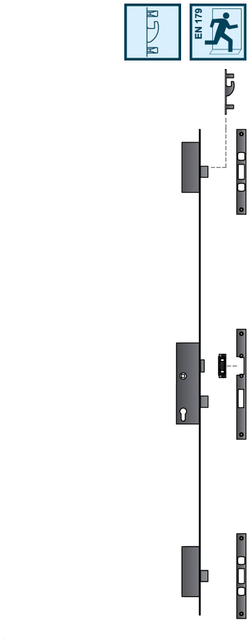 • Bei einwärts öffnenden Türen kann nur die Norm EN 179 erfüllt werden.