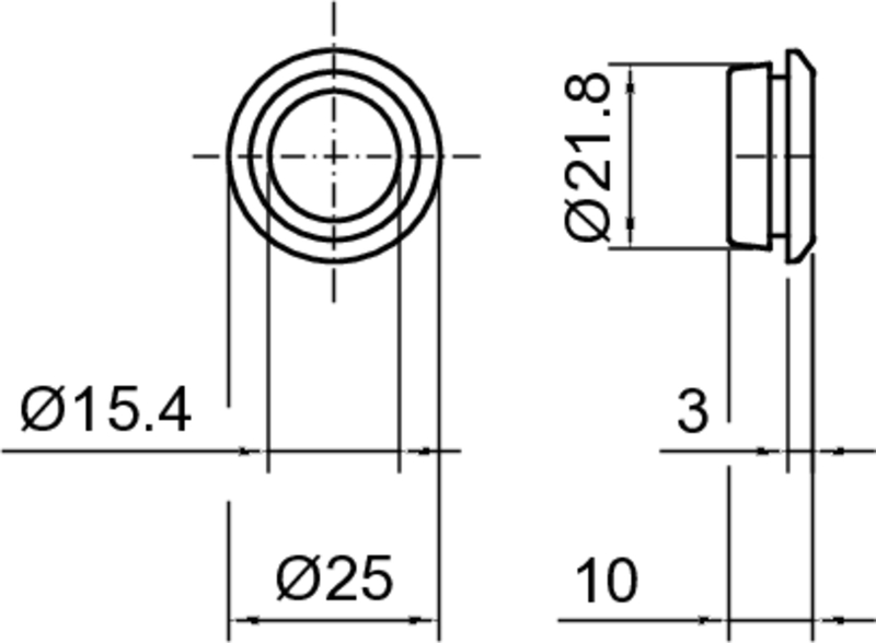 - Bohrung im Türprofil Ø 21 ± 0,05 mm, Zierring mit Metallkleber sichern