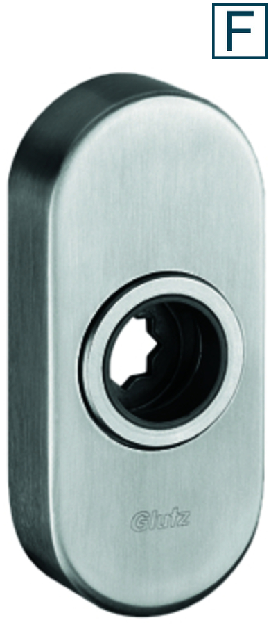 Glutz Clip-Drückerrosette 5610C Easyfix o. Feder h=14mm, oval, Edelstahl mattGlutz Clip-Drückerrosette 5609C m. Federhochh. h=14mm, oval, DIN L, Edelstahl matt
