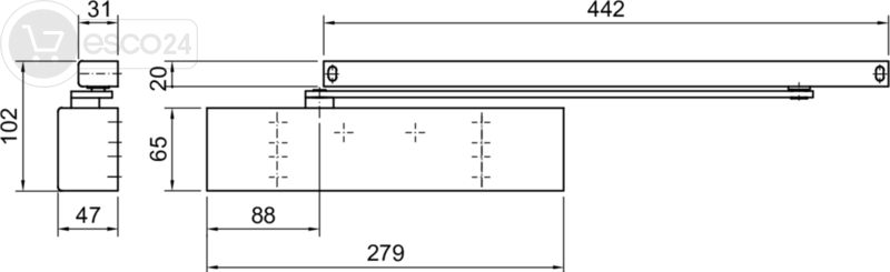 | Montage: | Türblattmontage auf der Bandgegenseite oder Kopfmontage auf der Bandseite |
