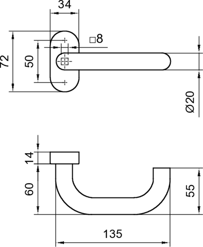 - Drücker fest / drehbar in Metall-Unterkonstruktion gelagert