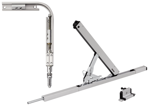 GEZE Oberlichtöffner OL320 mit Eckwinkelgetri. DIN L/R silberfarben bis 1200mm