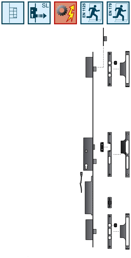 (für Falle, Riegel, Zylinder, Drückerbetätigung)