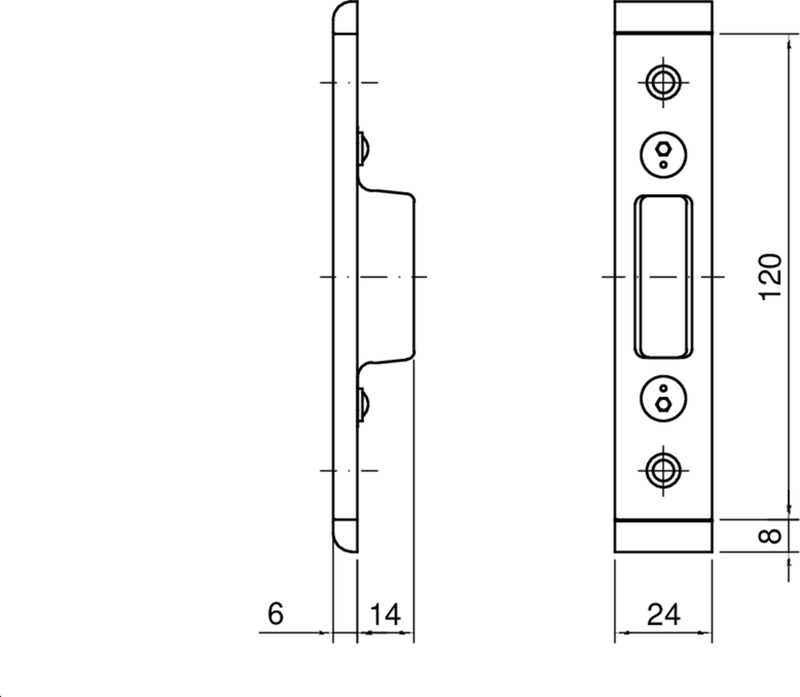 GU Schließgehäuse f. Zusatzfallenriegel U6x24x120, Edelstahl