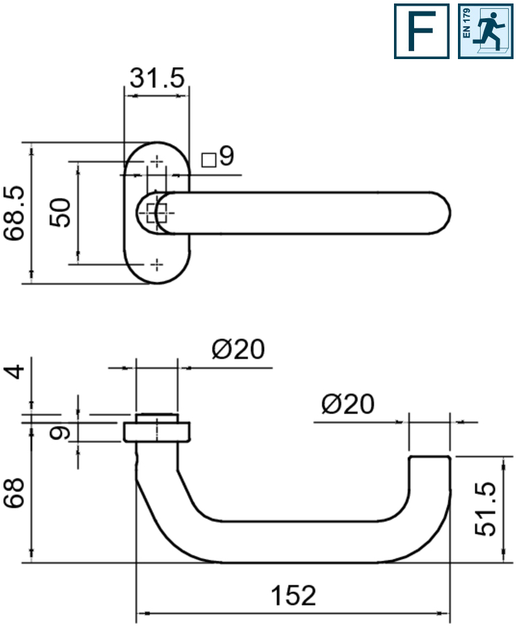 OGRO Türdrücker 8100VFS/6621 VK=9mm, ER (Edelstahl matt)