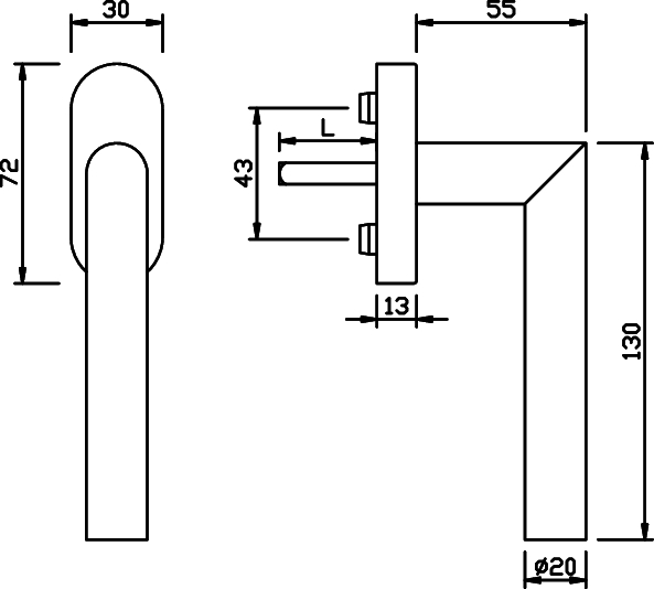 greenteQ Fenstergriff FG61H.V.ER 10/ 32/37/42 mit Schrauben M5x40/45/50
